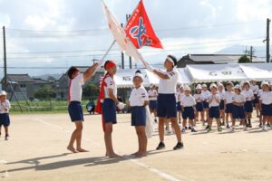 9月27日(土)、さわやかな秋晴れのもと、令和7年度運動会を行いました。たくさんのご来賓、地域の方々、保護者の皆さんの温かい声援のもと、子供たちは、様々な競技や演技、応援にと一生懸命に取り組み、赤組、白組、熱戦を繰り広げました。子供たちが話し合って決めたスローガンのとおり「勝っても負けても最後は笑顔!協力し合って全力で!みんなが楽しむ運動会!」となりました。