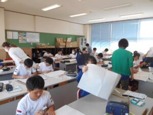 地域の方にもご協力いただき、子供たちが困った時にはサポートをしていただいています。子供たちは自分の「トートバッグ」作りに一生懸命に取り組んでいました。