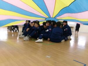 11月26日(水)、4年生が総合的な学習の時間のテーマ「つながりを広げよう」のもと、にいかわ総合支援学校を訪問し、「もっとなかよしぽかぽか交流会」を行いました。子供たちは、にいかわ総合支援学校の4年生と一緒に楽しむことができるようにと考えて一生懸命に準備し、釣りや迷路、ボール入れ等の遊び場を作成しました。迷路では、車椅子の友達も通れるようにと幅を広くとるなどの工夫もしていました。