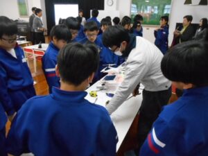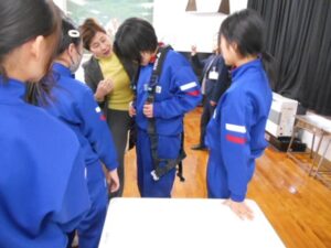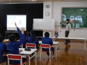 1月22日(木)、6年生が総合的な学習の時間に校区の会社「桜井建設」の方々に来ていただき、生活を守るための大切なインフラの仕事についてお話を聞きました。子供たちは、いつも自分たちが通っている道路や遊んでいる公園をつくっていたり、学校の除雪をしていただいていたりと、関わりの深さを実感していました。また、実際に工事で使っている新しい測量の道具やドローンなどの道具を見たり、触れたりさせていただきました。