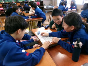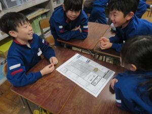 毎月第4木曜日は、ほのぼのデーとして温かい人間関係づくりにつながる楽しい活動をしています。1月22日(木)は、ほかほかすごろくを各学年で行いました。すごろくのマスには「みんなとハイタッチする」や「『がんばれー!』と声をかけよう」など、心がほかほかするようなお題がたくさん書かれています。子供たちは、グループのメンバーで頭をよせあい、笑顔で楽しそうに活動しており、ほのぼのとしたひとときとなりました。
